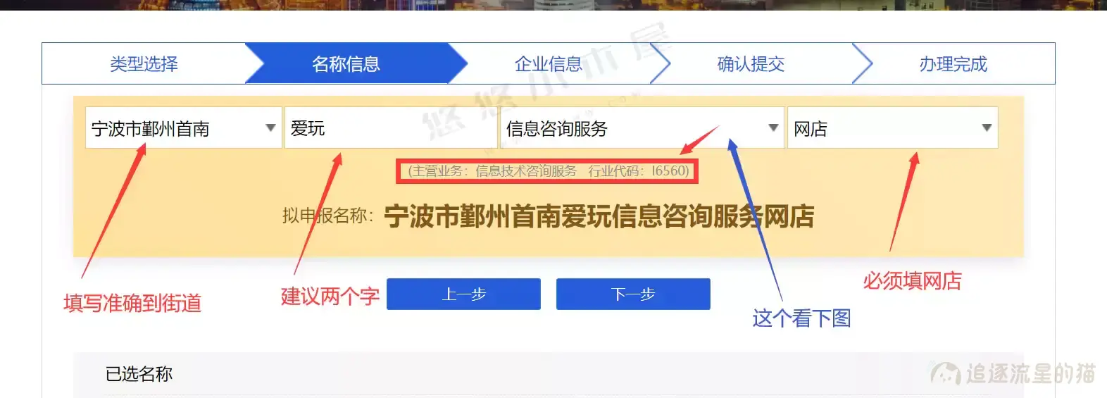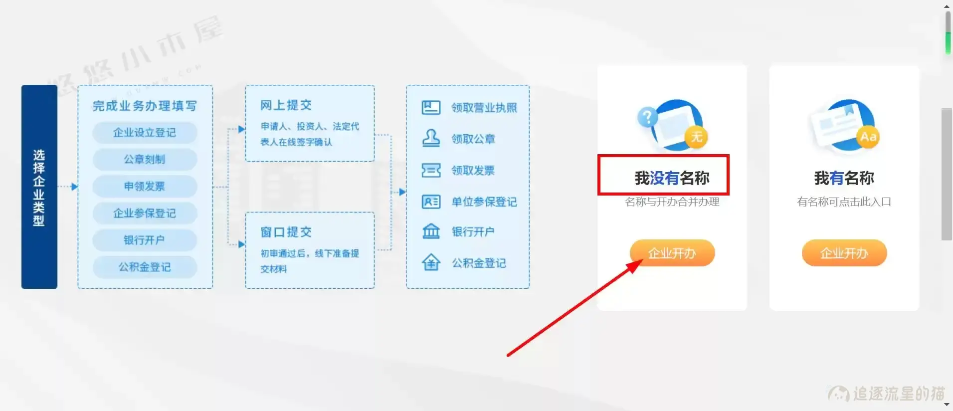 如果都不行就注册一个,然后点击企业开办,选我没有名称开办