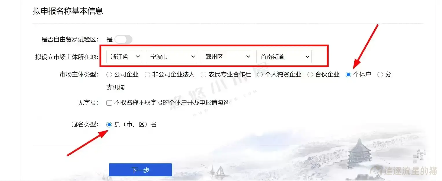 下一步开办信息,公章啥的,这一页全选否就行(原因不便明说)。